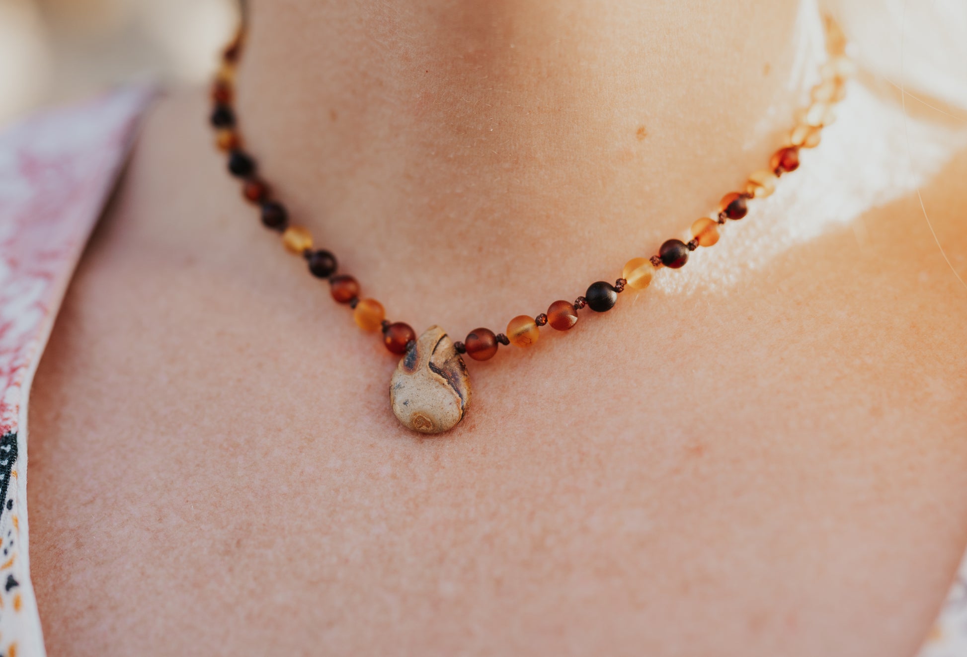 Jasper Pendant with Unpolished Multicolored Amber 15"